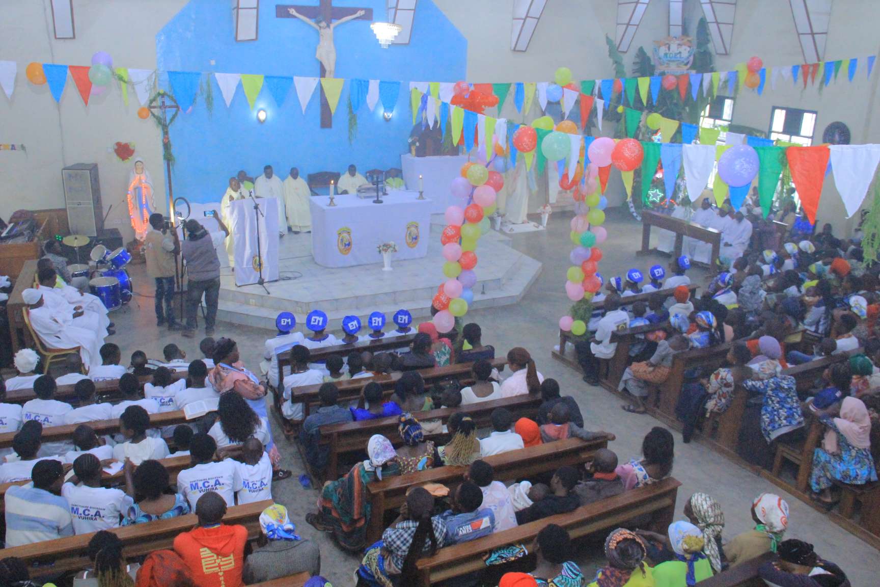 Cette célébration eucharistique était présidée par l’abbé Blaise Ndungo Kikwaya, vice-recteur du sanctuaire MCA. Il était entouré de l’abbé Emmanuel Kangitsi, recteur, de l’abbé Simon Kikwaya, aumônier du sanctuaire, ainsi que de l’abbé Claude.